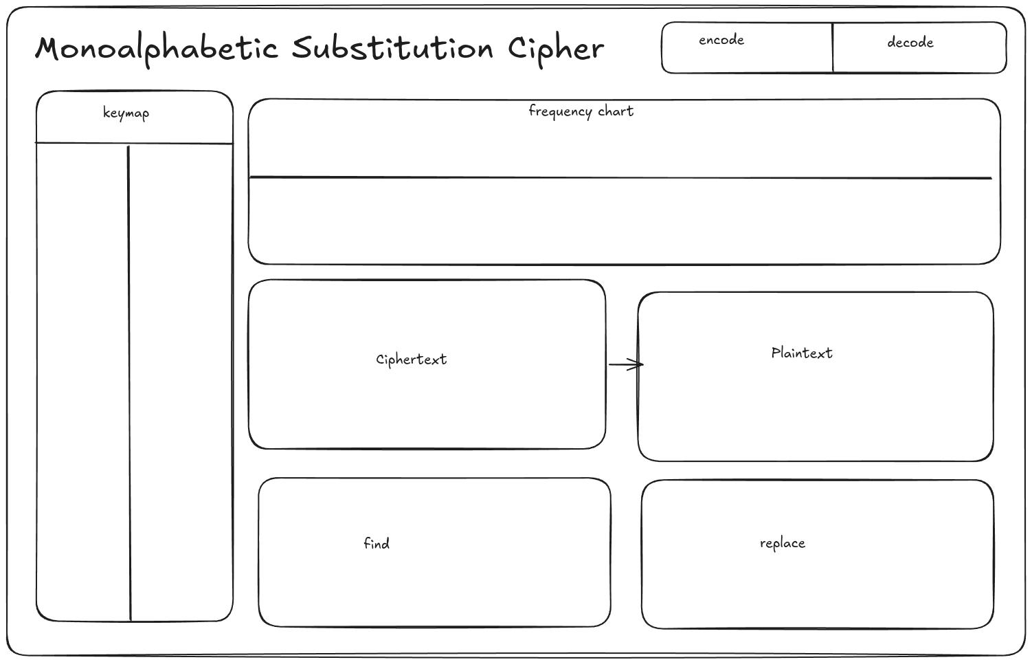 Also planned out a rough outline of how the UI for the monoalphabetic cipher is going to look like. Very professional if I say so myself (/s).