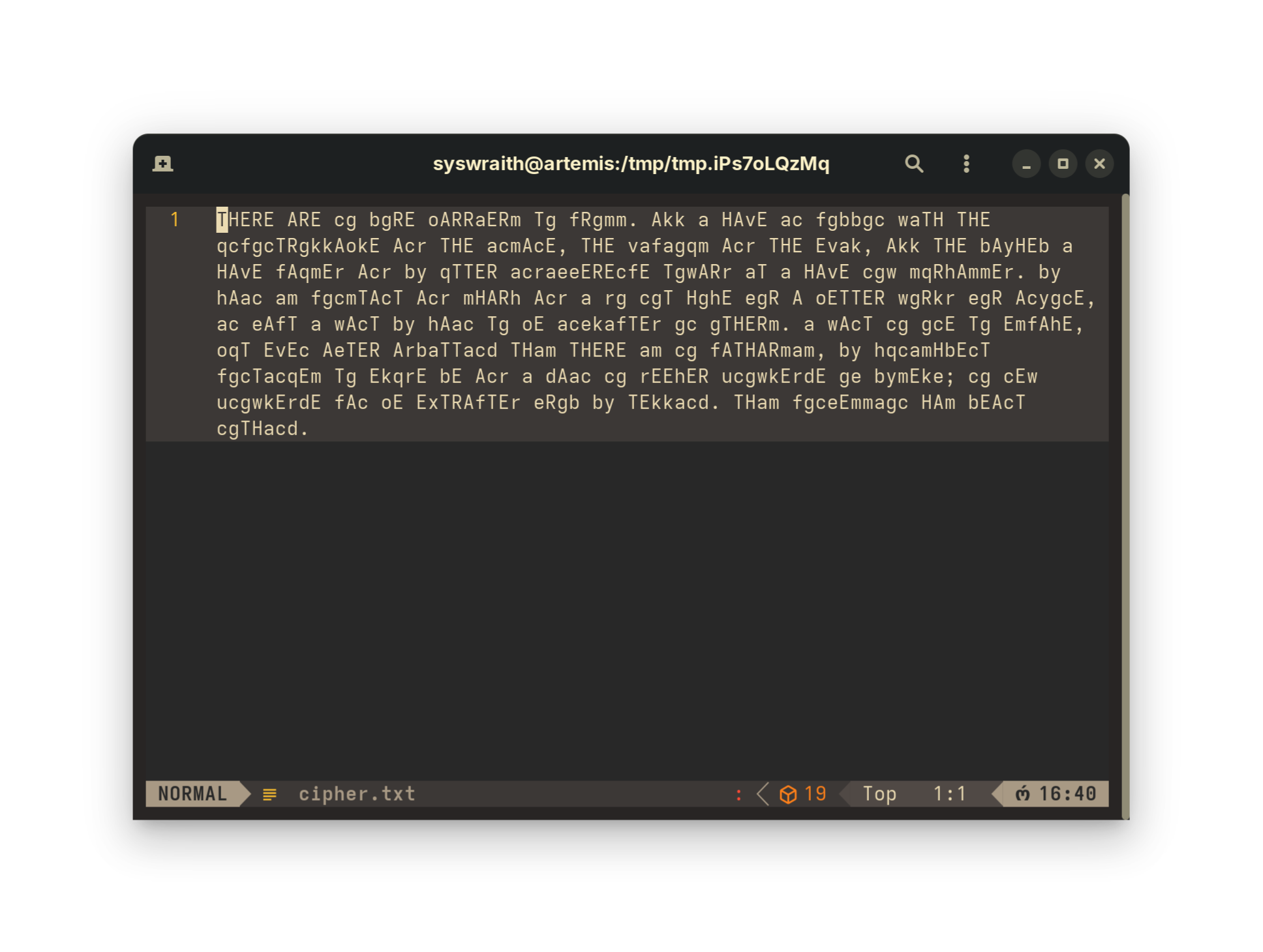 -ing,-ed). - Track mappings in a table. Sometimes one may be able to bruteforce the key used to encrypt the message, and then break the cipher that way.