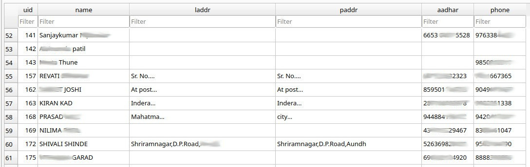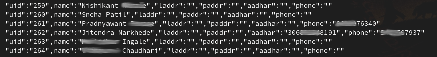 name,local address,permanent address,phone numberand (most interesting of all!)aadhar. Read up on Aadhar here and see why its important to never disclose it publicly, like its been done here.
