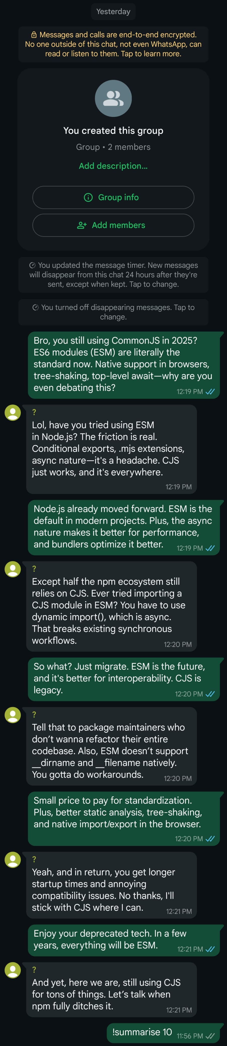 if (msg.body.startsWith("!summarise") && msg.fromMe) {